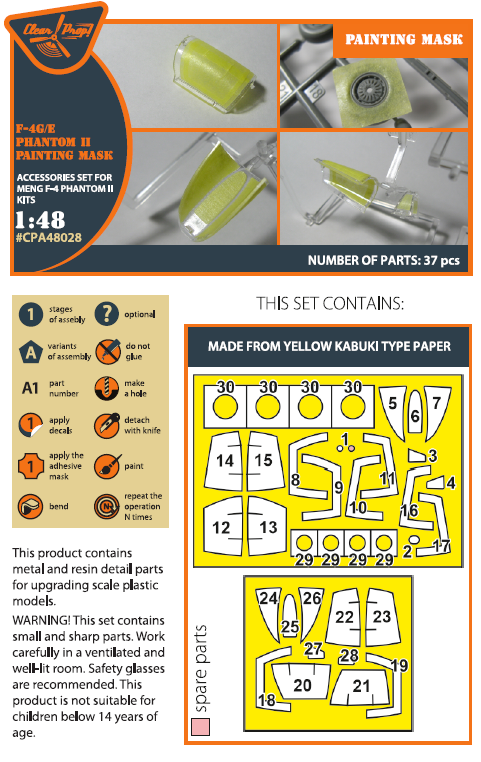 Clear Prop - 1/48 McDonnell F-4G/E Phantom II painting mask on 'yellow kabuki paper' for Meng kit