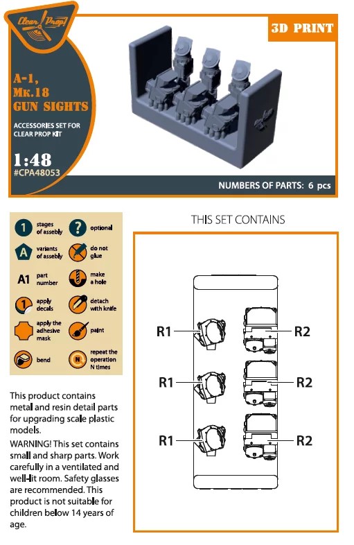Clear Prop - 1/48 Mk.18, A-1 gun sights (3D-Printed)