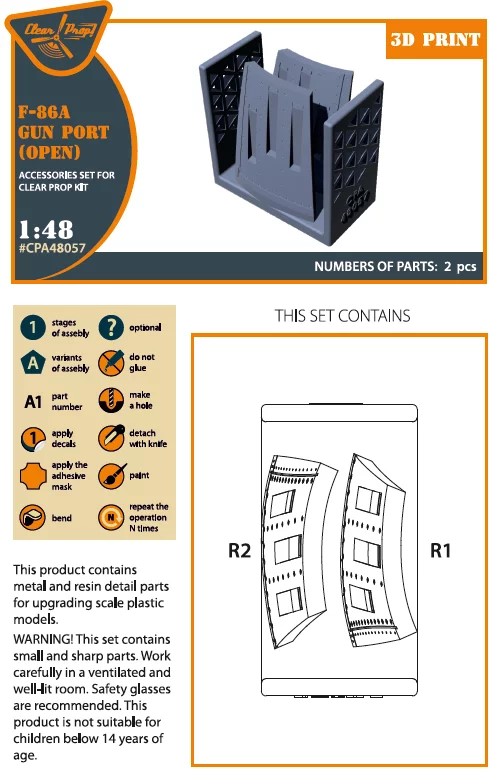 Clear Prop - 1/48 North-American F-86A Sabre gun port (open position) (for Clear Prop) (3D-Printed)