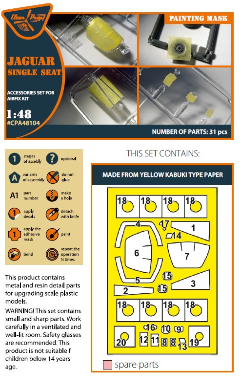 CLEAR PROP - 1/48 Jaguar Single seat painting mask for Airfix