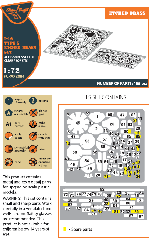 CLEAR PROP - 1/72 I-16 type 5 detail PE set (CL.PROP)