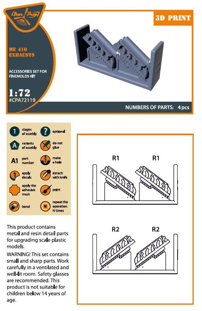CLEAR PROP - 1/72 Me-410 B-1/U2/U4/R4 exhausts for Finemolds