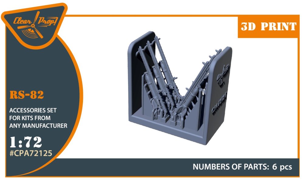 Clear Prop - 1/72 RS-82 unguided missile as used on most Soviet airplanes including : Polikarpov I-15bis, I-16, I-153, Yakovlev Yak-1B, Yak-7, Sukhoi Su-2, Kamov A-7-3A (for A-Model, Arma Hobby kits, Brengun, Heller, Ibg and Smer kits)
