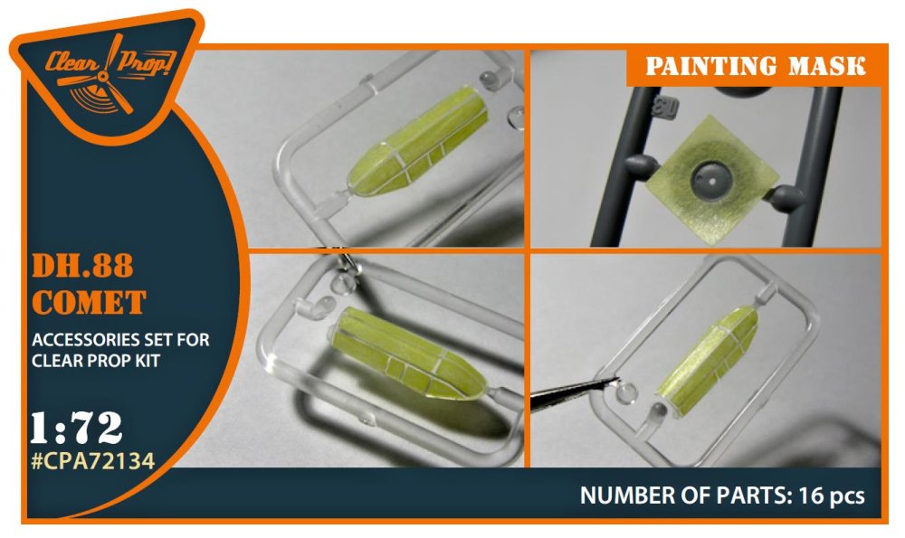 CLEAR PROP - 1/72 DH.88 Comet painting mask for Clear Prop