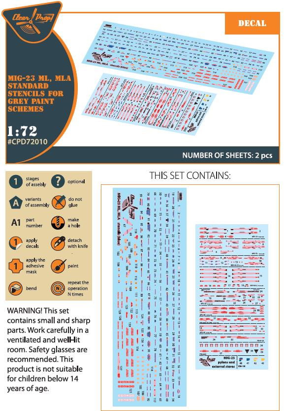 CLEAR PROP - 1/72 Decal MiG-23ML, MLD, P, MLAE for grey schemes