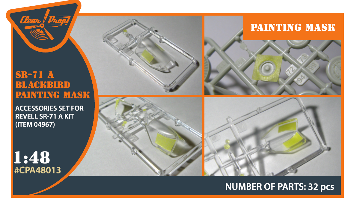 Clear Prop - 1/48 Lockheed SR-71A Blackbird painting mask on yellow kabuki paper (for Revell kits)