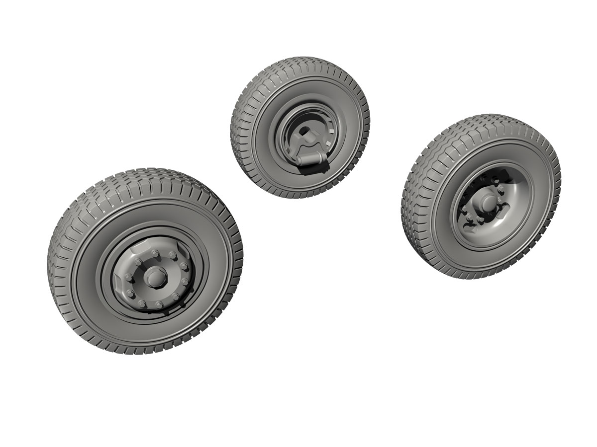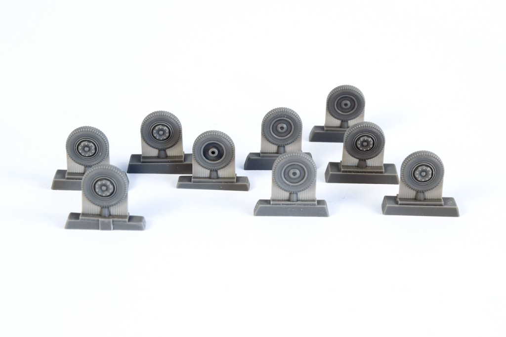 CMK - 1/72 Meillerwagen A4/V-2 transporter wheel set. Nine new and detailed wheels (eight + one spare) that offer more details and have tyres with sharply rendered tread pattern. To be used with your Meillerwagen A4/V2 missiles transporter. (for Special Armour kits)