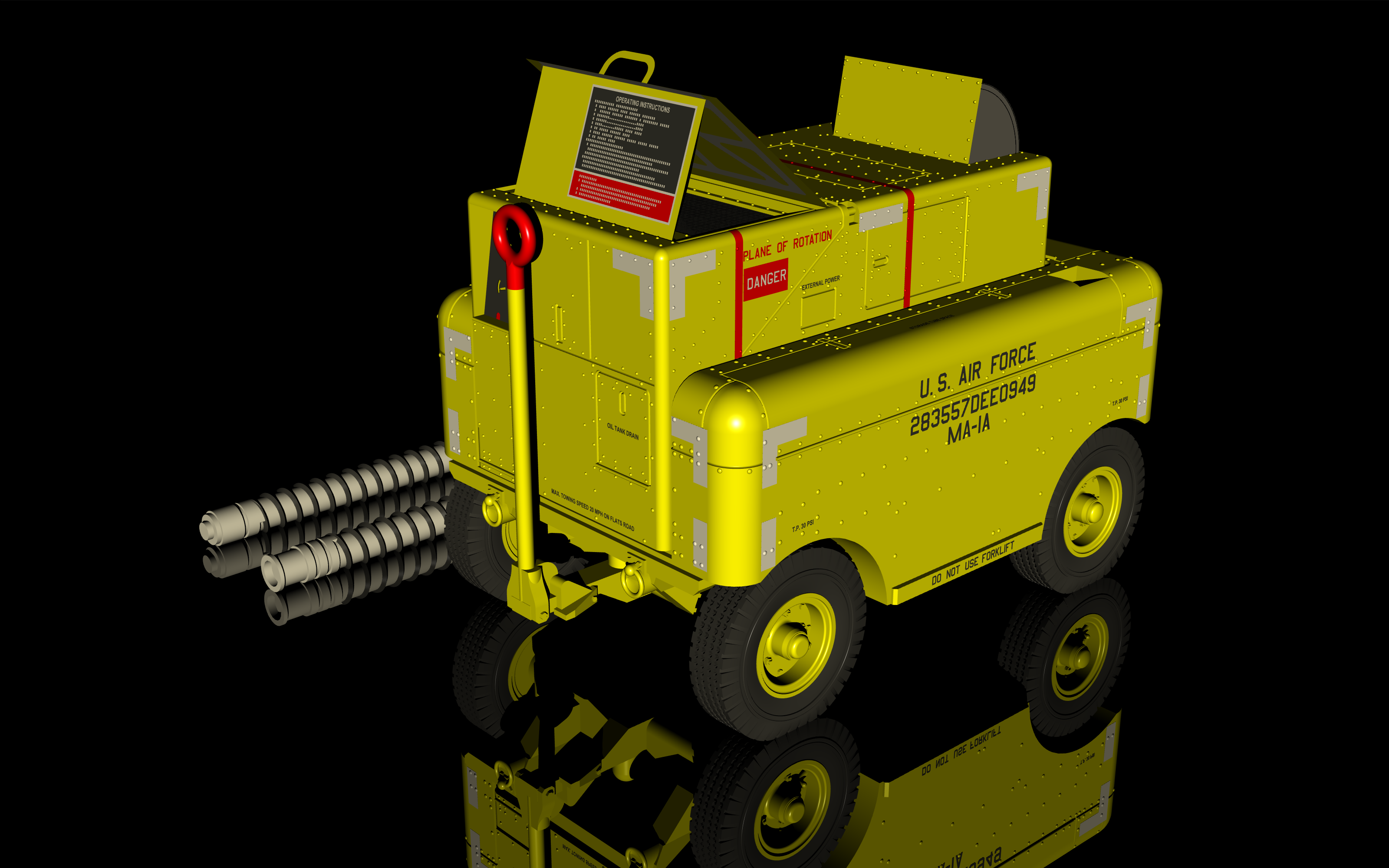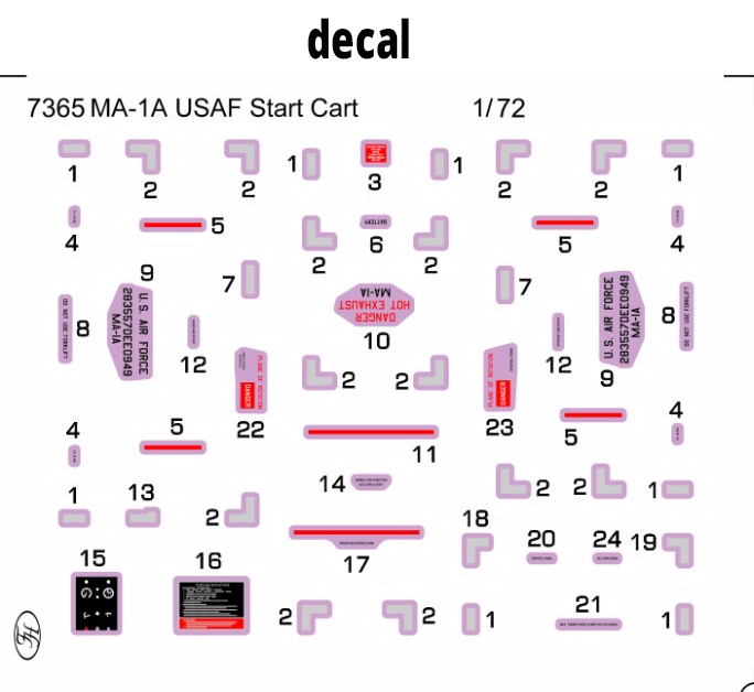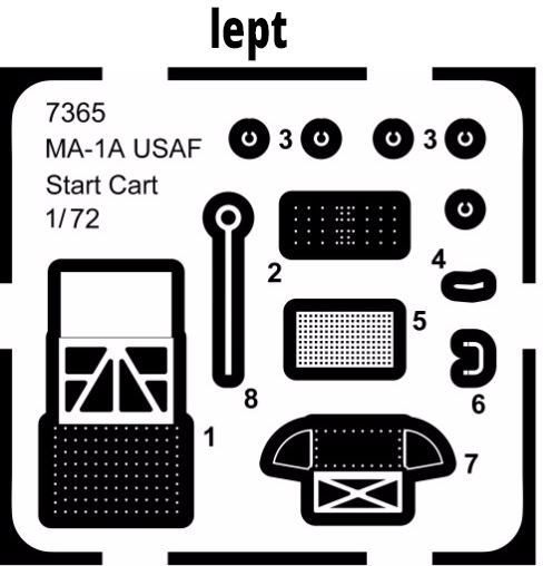 CMK - 1/72 MA-1A USAF Start Cart. High pressure air starter unit used for starting an aircraft jet engine by means of high velocity air generated by a small turbine inside the cart. The MA-1A cart was in service since the 1950s and and was used to start number of US jet engine aircraft such as the T-33A, T-38 and many others, but could have been used with the huge C-130 turboprop as well.