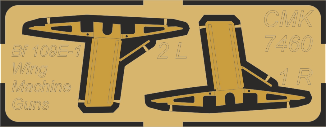CMK - 1/72 Messerschmitt Bf-109E-1/5 Wing Machine Guns The wing armament of the light weight Bf 109 E-1 and E-5 versions consisted of a pair of 7.9mm machine guns. This set offers open wing gun compartments with machine gun bodies and also contains a few photo etched parts. Designed to fit the Bf 109 E-1/5 kits from Special Hobby and those reboxed by Eduard.
