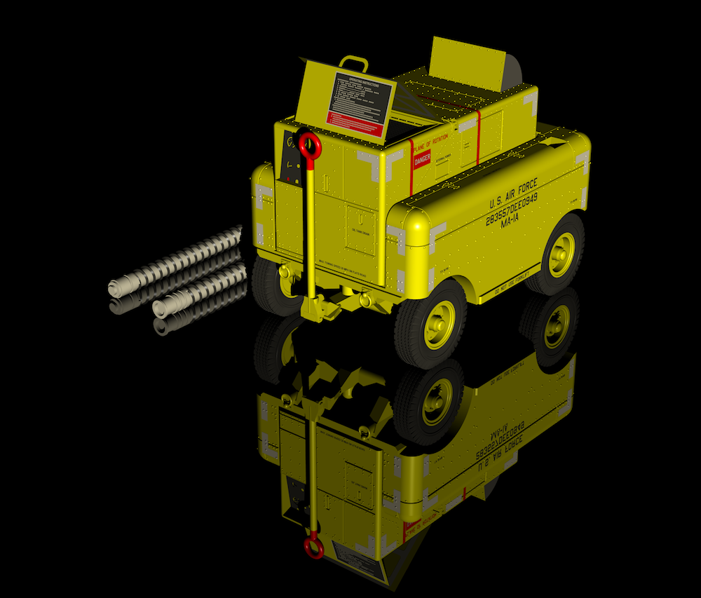 CMK - 1/48 MA-1A - 1/48 USAF Start Cart High pressure air starter unit used for starting an aircraft jet engine by means of high velocity air generated by a small turbine inside the cart. The MA-1A cart was in service since the 1950s and and was used to start number of US jet engine aircraft such as the T-33A, T-38 and many others, but could have been used with the huge C-130 turboprop as well.