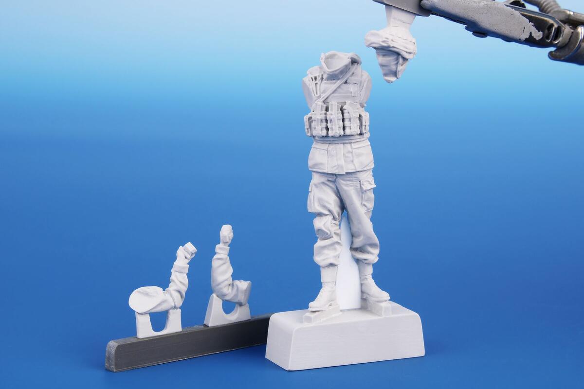CMK - 1/35 Ukranian Soldier with Nlaw and AK-74MN. Superbly detailed resin cast figure portraying a Ukrainian troop, a real tank destroyer. The standing soldier is armed with an AK-47MN submachine gun and a Nlaw anti-tank missile. The gun and missile are 3D-printed. You will find a stencils decals for the missile in the set, too.