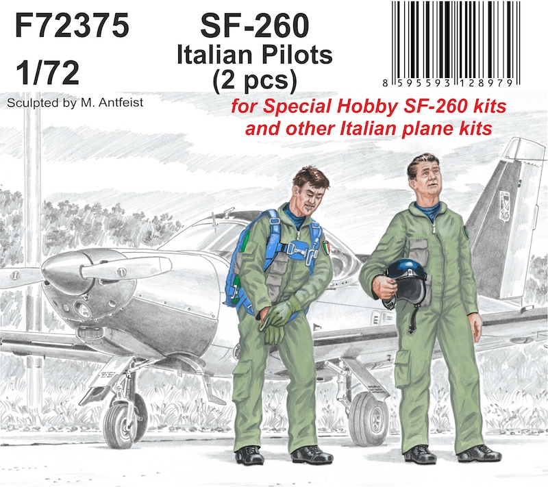 CMK - 1/72 Sai SF-260 Italian Pilots and any other modern Italian aircraft (for Az Models, Planet Models and Special Hobby kits) Figures of two standing pilots that can be used with your model of the SF-260 trainer aeroplane or any other modern aircraft operated by the Italian military.