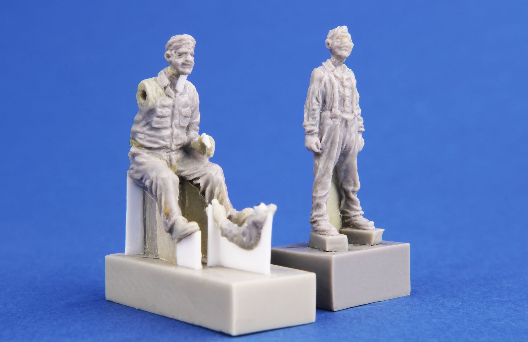 Set of figures to go with resin kit of the Zetor 25. The set includes a civilian driver and a young boy watching him. The driver is cast together with the tractor seat.