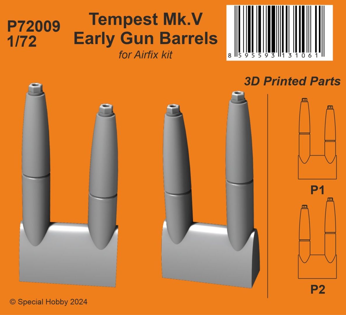 CMK - 1/72 Hawker Tempest Mk.V Early Gun Barrels The set offers 3D-Printed cannon barrels for the Tempest Mk.V series I models. Our barrels do posses much higher levels of detail compared with the Airfix kit items. (for Airfix kits)