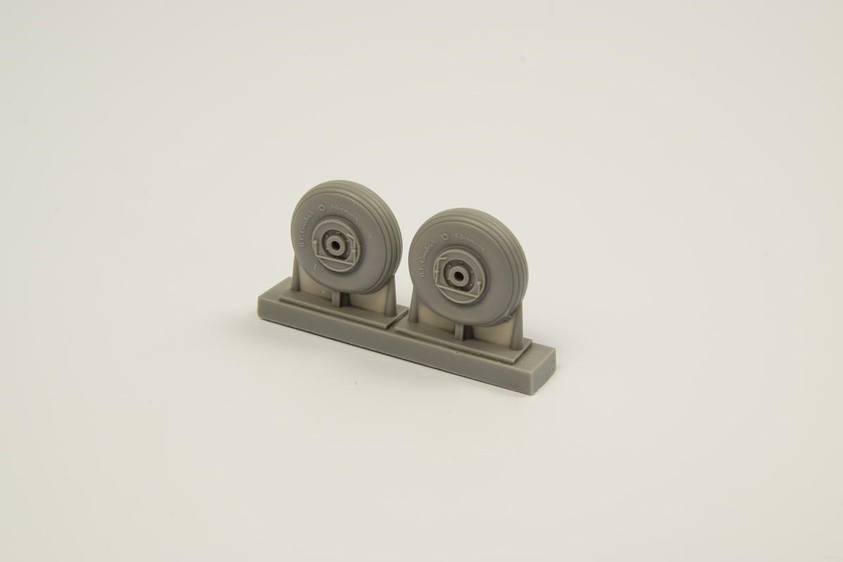 The set offers mainwheels with nicely detailed hub area. The tyres come with very fine tread. Designed for Special Hobby and Azur/Frrom kits of Rumanian I.A.R.-80/81 fighter and dive bomber aircraft. 3D designed and master marts produced on a 3D printer.