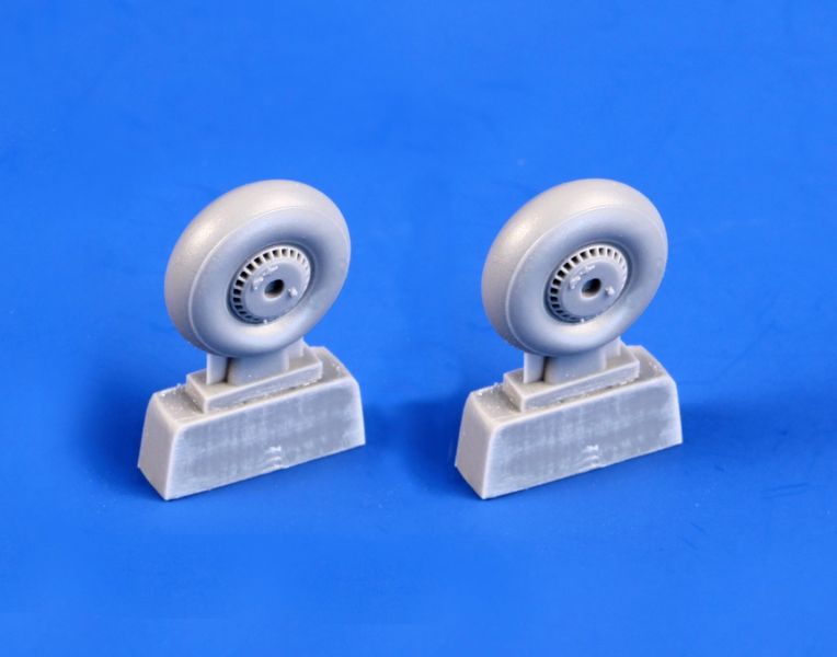 CMK - 1/48 Reggiane Re-2005 Main Wheels(for Special Hobby kits) incorporating higher levels of detail compared to the original in the kit and the tyres are also weighed and come in one part, so you do not need to assemble them from the halves.