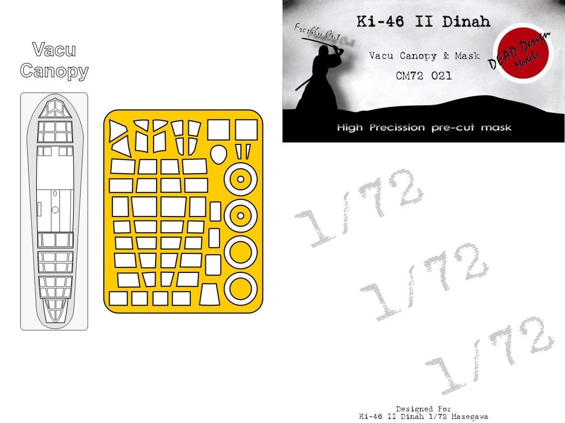 Dead Design Models - 1/72 Mitsubishi Ki-46-II Dinah vacu canopy and masks for Hasegawa