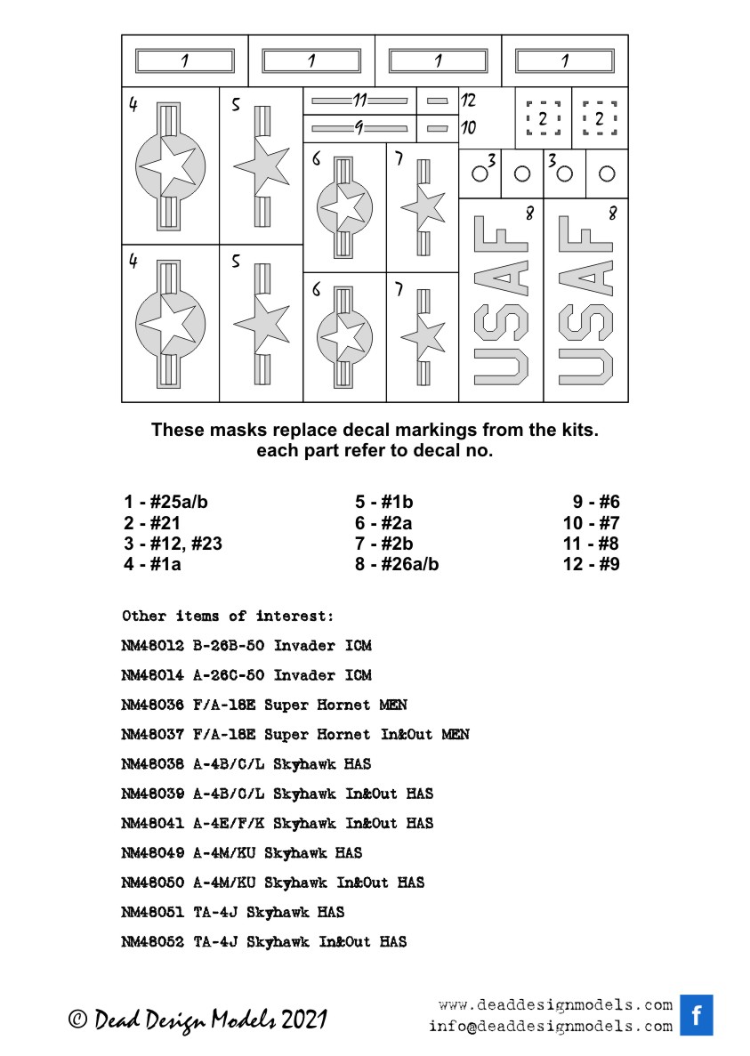 Dead Design Models - 1/48 Douglas A/B-26 Invader National Insignia paint masks 1950s (for Icm kits)