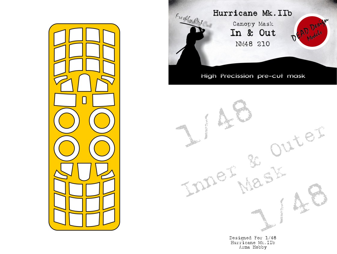 Dead Design Models - 1/48 Hawker Hurricane Mk.IIb wheels and canopy frame paint mask for inside and outside for Arma Hobby