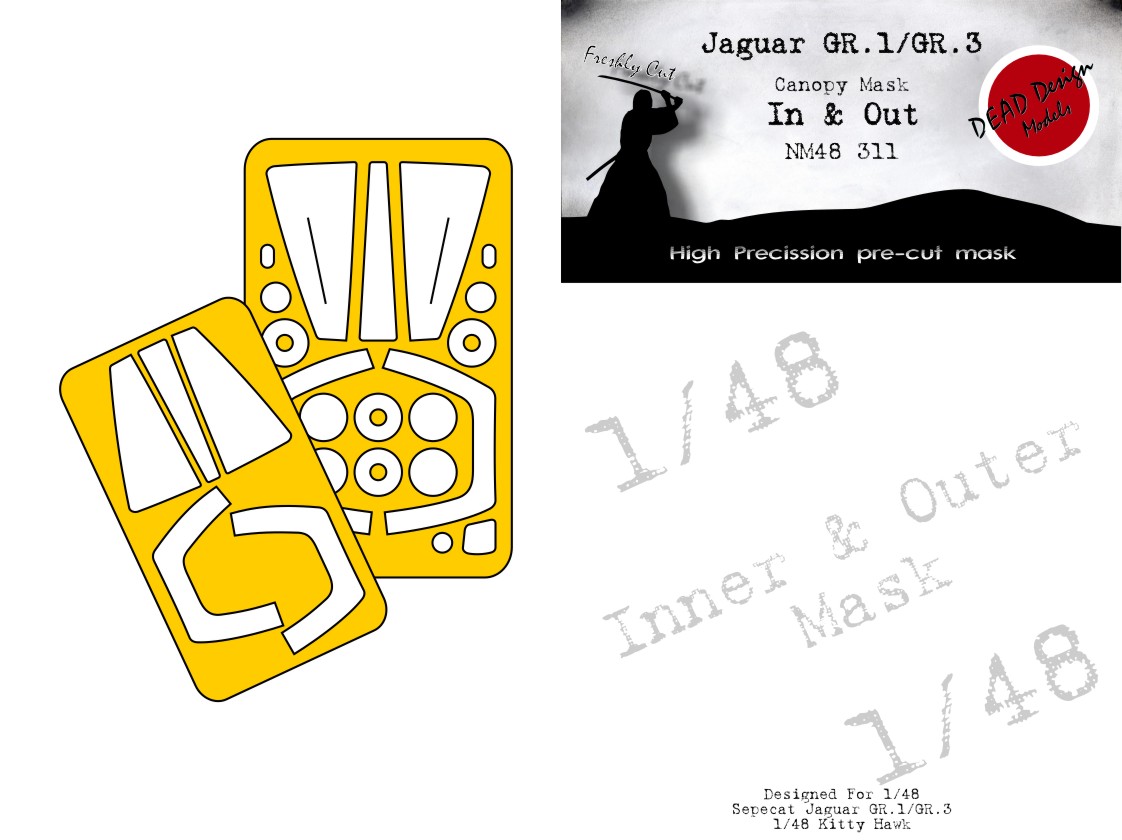 Dead Design Models - 1/48 Sepecat Jaguar GR.1/3 canopy frame paint mask inside and outsidemask for Kitty Hawk Models and Zimi Model