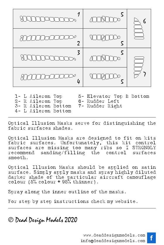 Dead Design Models - 1/72 Nakajima Ki-43-II Hayabusa 3D/optical illusion paint mask for control surfaces (for Special Hobby kits)