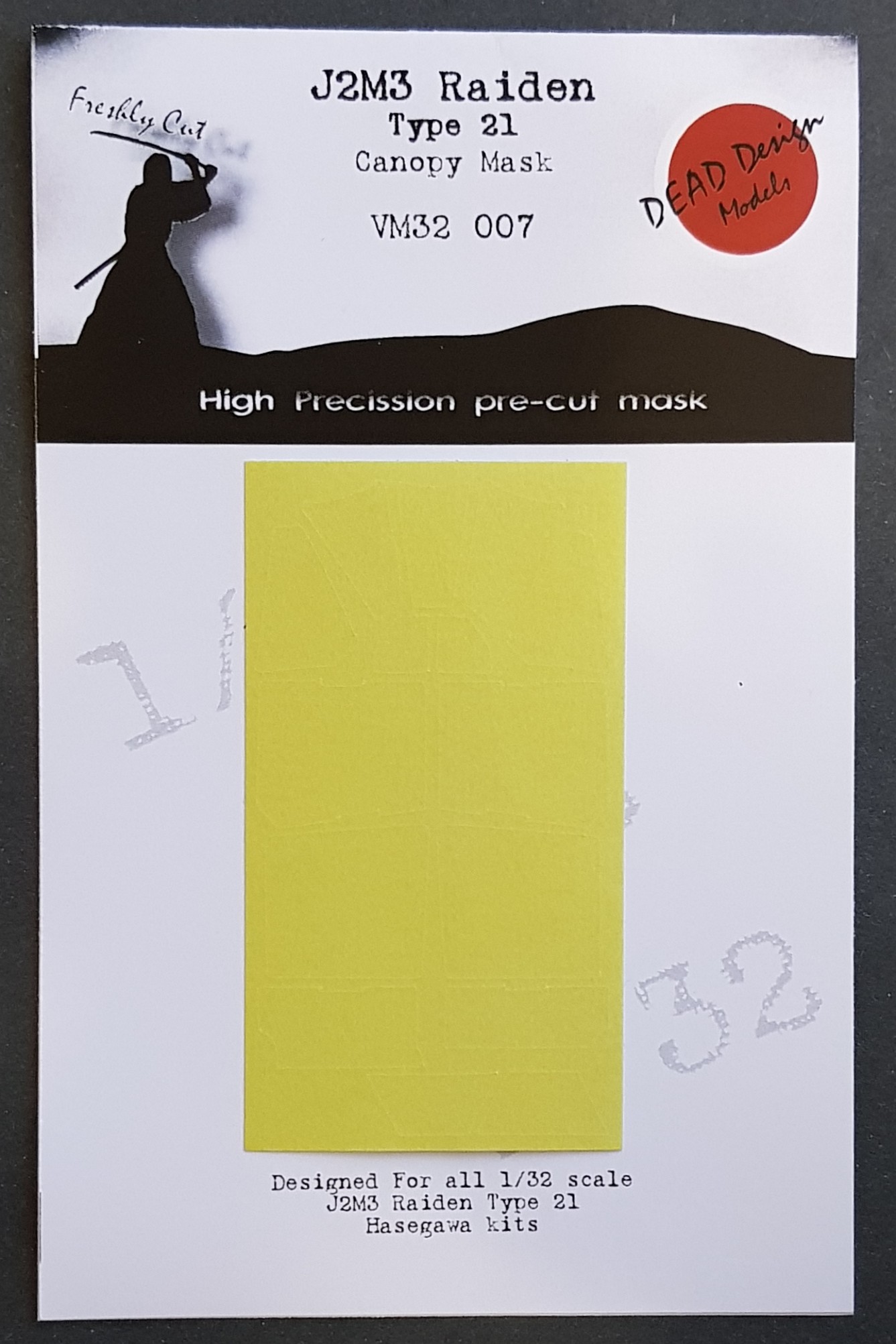 Dead Design Models - 1/32 Mitsubishi J2M3 Raiden exterior canopy frame paint mask (for Hasegawa kits)
