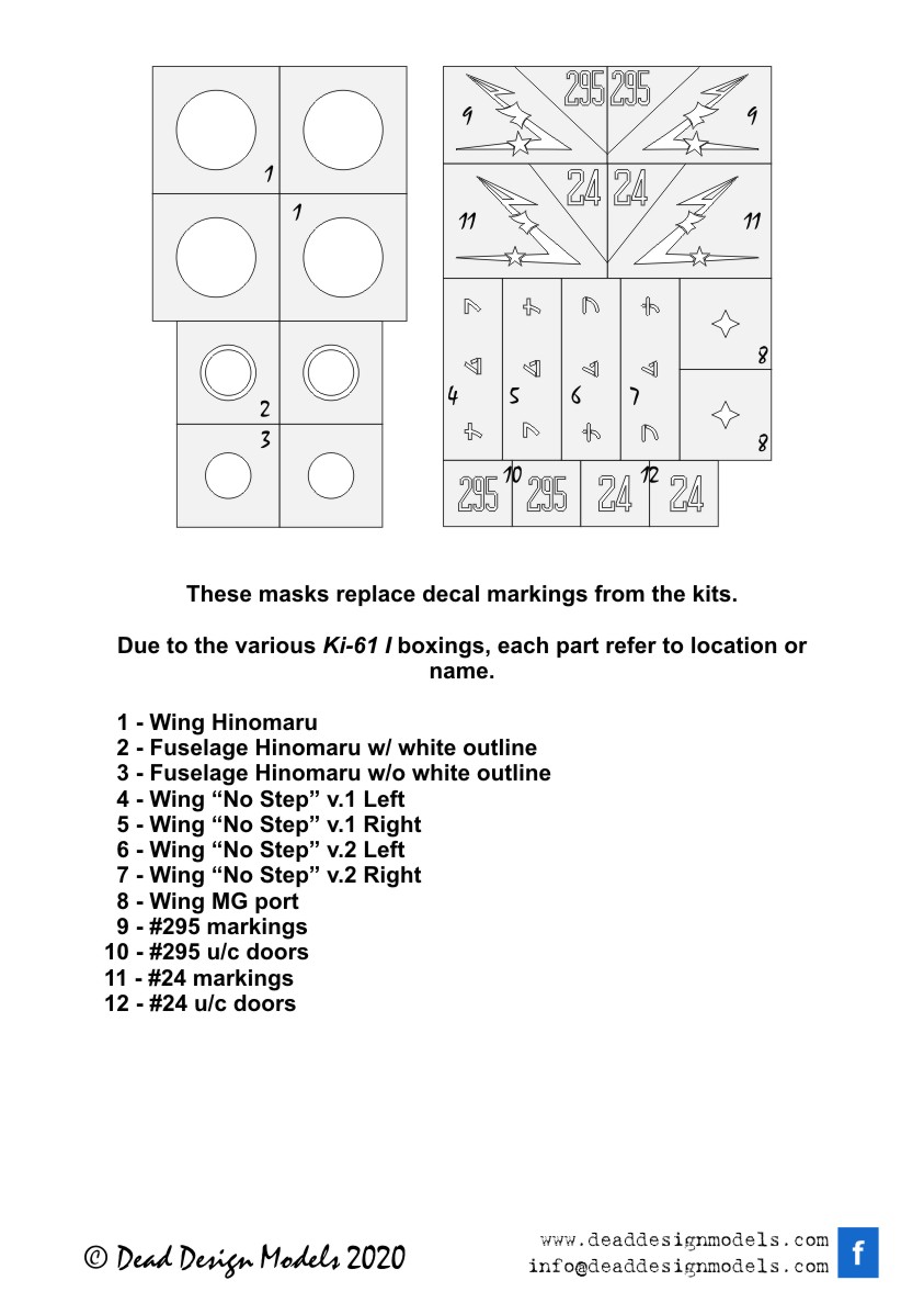 Dead Design Models - 1/32 Kawasaki Ki-61 Hien markings and national insignias with and without white outlines (for Hasegawa kits)