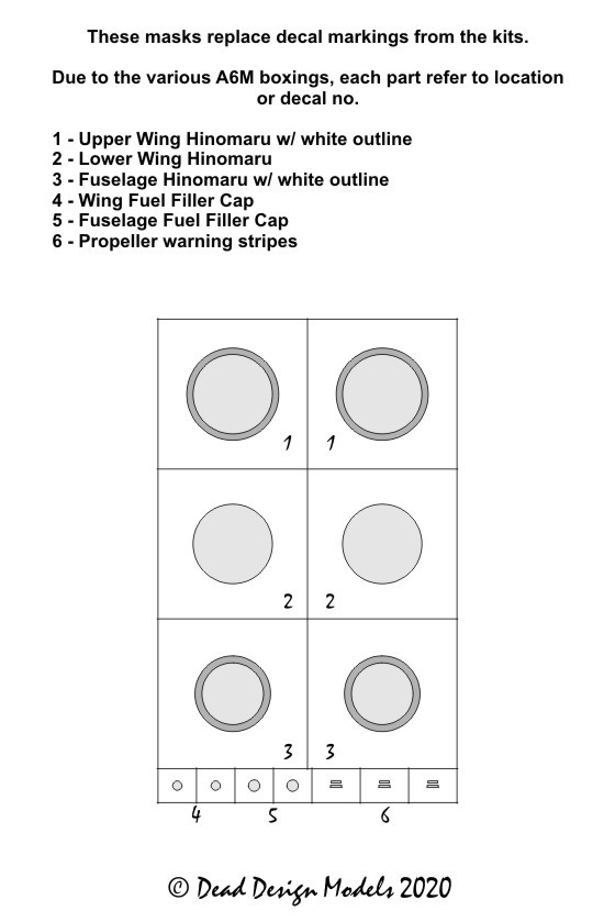 Dead Design Models - 1/48 Mitsubishi A6M1/A6M2/A6M3 National Insignia paint masks with white outline (for Hasegawa kits)