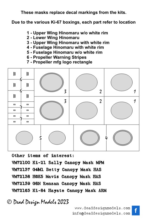 Dead Design Models - 1/72 Mitsubishi G3M2/G3M3 Nell National Insignia & Markings (designed be used with Hasegawa kits) masks