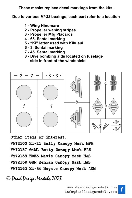 Dead Design Models - 1/72 Kawasaki Ki-32 Mary National Insignia for A-Model kits masks