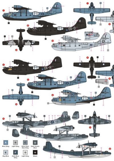 DK Decals - 1/72 Dornier Do 24T & Catalina in RAAF and NEIAF (2 + 6 camo schemes) 1. Consolidated PBY-5 Catalina, A24-91, No.111 ASR Flight, 1945 2. Consolidated PBY-5 Catalina, A24-64, No.43 Sq. RAAF, Australia 1943 3. Consolidated PBY-4 Catalina, A24-29, No.20 Sq. RAAF, New Guinea 1943 4. Consolidated PBY-5 Catalina, A24-65, No.43 Sq. RAAF, Australia 1943 5. Consolidated PBY-5 Catalina, A24-17, No.11 Sq. RAAF, 1943 6. Consolidated PBY-5 Catalina, Y-45, No.321 Sq. RNNAS, Australia 1943 7. Dornier Do-24, A49-4, No.41 Sq. RAAF, Australia 1943 8. Dornier Do-24, X-24, Dutch Navy, Port Moresby 1942