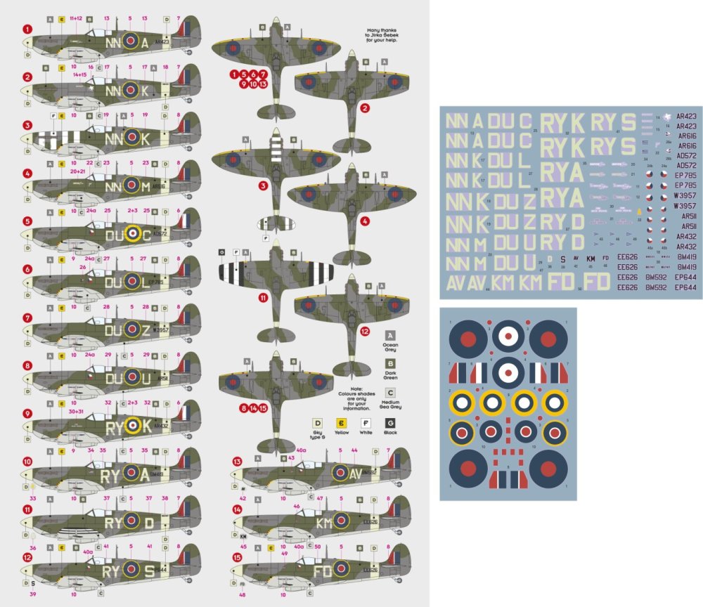 DK DECALS - 1/72 Spitfire Mk.V Czechoslovak squadrons in RAF