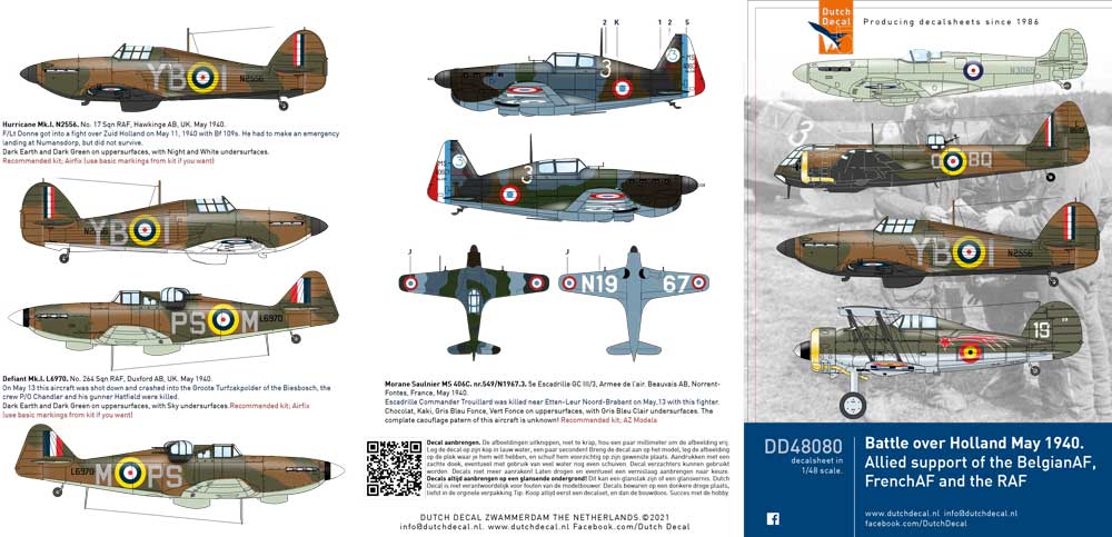 Dutch Decal - 1/48 'Battle over Holland' Allied support during the battle in May 10, 1940.