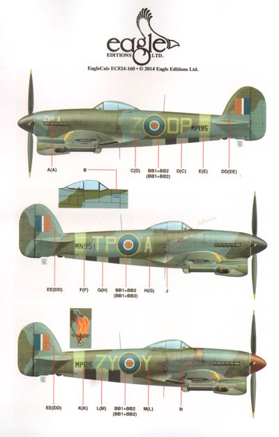 Eagle Cal - 1/24 Hawker Typhoon Mk.IB in 1/24th scale ZPP X DP-Z 193 Sqn MP 195 Pilot S/L J.C. Button The Uninvited TP-A 198 Sqn MN 951 Pilot F/L Denis Sweeting ZY-Y 247 Sqn MP 126 Pilot S/L Basil G Stapleton