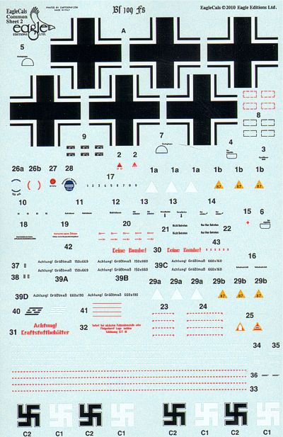 Eagle Cal - 1/32 Messerschmitt Bf-109F-4 Tropical. Markings for 'White 1' 4./JG 3 Pilot: Lt. Albert Helms 'Yellow 3' 6./JG 3 Pilot: Uffz. Frans Selwaiger '