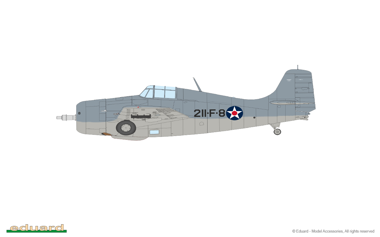 Eduard - 1/48 Midway Dual Combo Limited edition kit of US carrier based fighter F4F-3 and F4F-4 Wildcat in 1/48 scale. Kit presents Wilcats from United States Navy and Marine Corps, from pre-war service to the Battle of Midway. Plastic parts:Eduard, marking options: 10, decals, Pe parts: pre-painted, painting mask