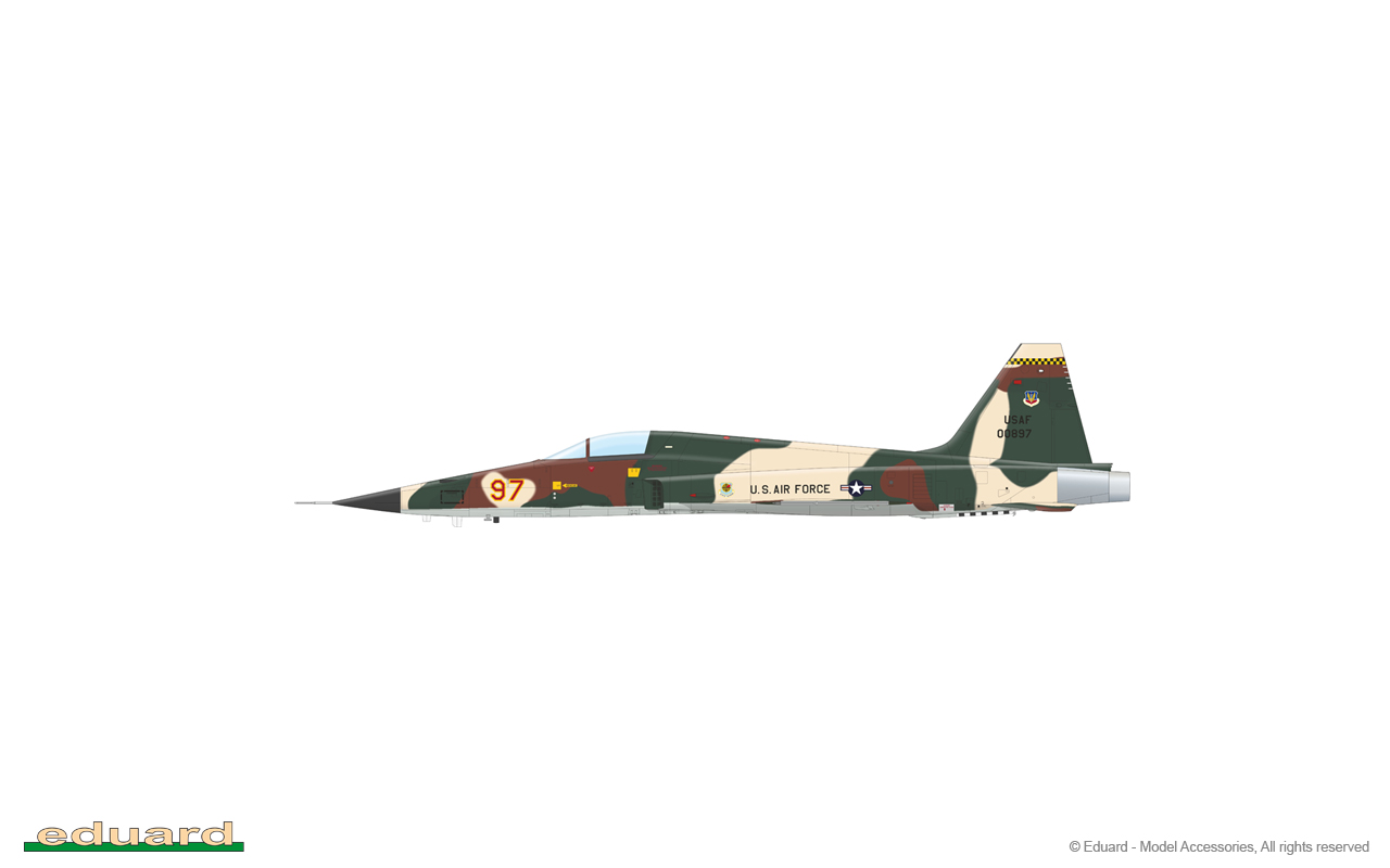 Eduard - 1/48 Freedom Tiger The Limited edition of the kit of the US supersonic light fighter Northrop F-5E in 1/48 scale.- plastic parts: Afv Club- marking options: 8- decals: Eduard- Pe parts: yes, pre-painted- painting mask: yes resin parts: yes, wheels, Rwr antennae
