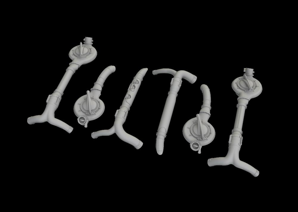 - Photo-etched parts, masks, and resin parts exhausts, superchargers from Eduard production.