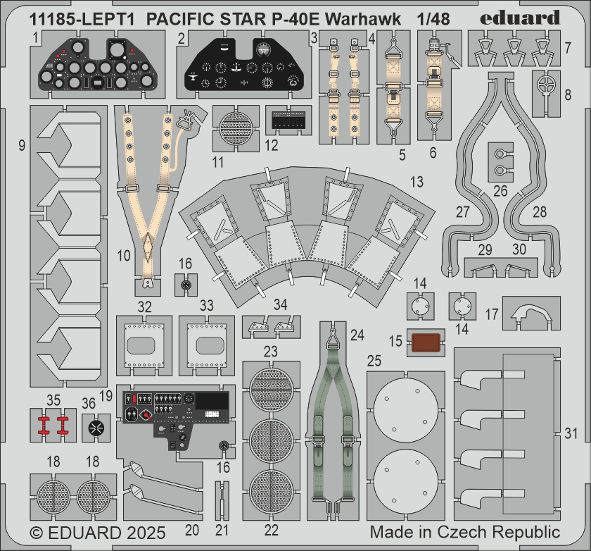 Eduard - 1/48 Pacific Star Curtiss P-40E Warhawk Dual Combo The Limited edition kit of the US fighter aircraft P-40E Warhawk in 1/48 scale. The kit offers markings for 10 aircraft. The box contains plastic sprues for two complete kits, from which it is possible to build aircraft flying in USAAF, Raaf and Rnzaf in Pacific Theater of Operations. plastic parts: Eduard- marking options: 10- decals: Eduard- Pe parts: yes, pre-painted- painting mask: yes