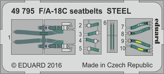 Eduard - 1/48 McDonnell-Douglas F/A-18C Hornet: seatbelts STEEL (for Kinetic Model kits)