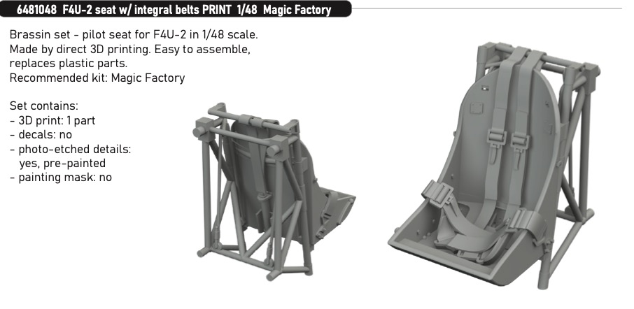 EDUARD - Brassin 1/48 F4U-2 seat with integral belts PRINT