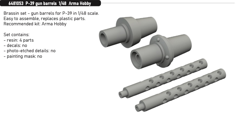 Brassin 1/48 P-39 gun barrels for Arma Hobby.