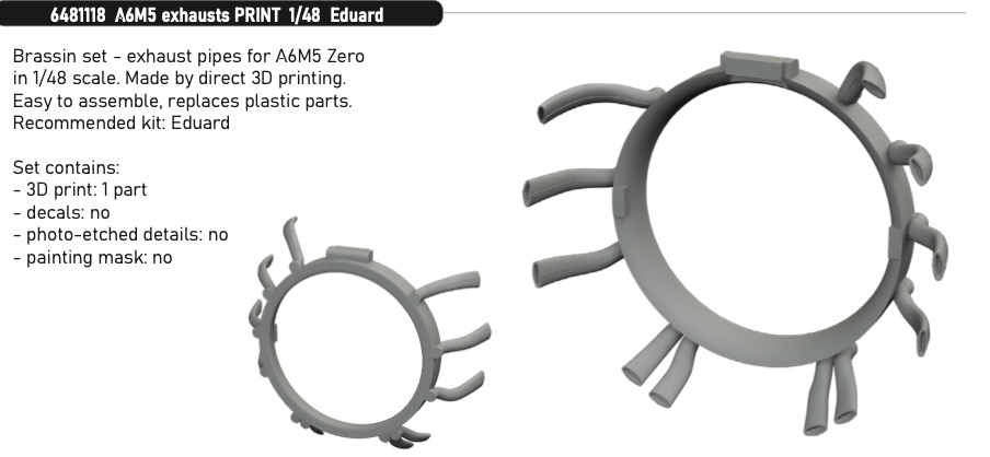 EDUARD - Brassin 1/48 A6M5 exhausts PRINT