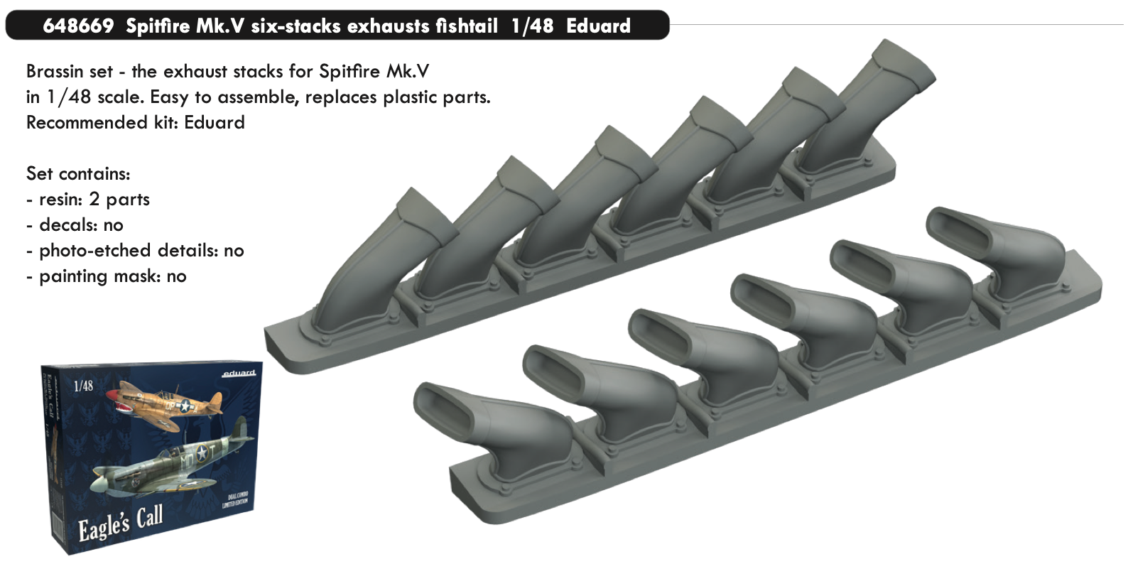 Brassin 1/48 Spitfire Mk.V six-stacks exhaust fishtail
