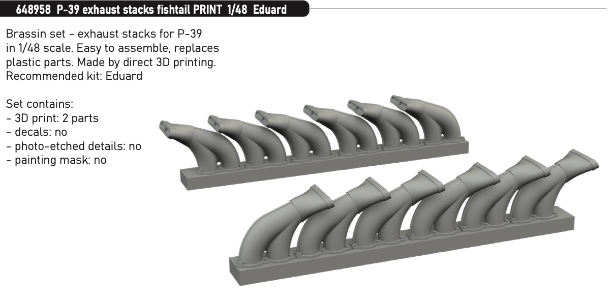 EDUARD - Brassin 1/48 P-39 exhaust stacks fishtail EDU