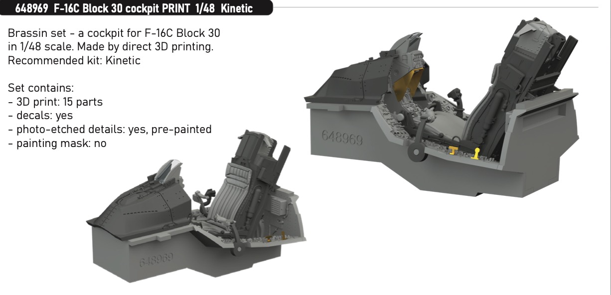 Brassin set a cocKPit for F-16C Block 30 in 1/48 scale. Made by direct 3D printing. Recommended kit: Kinetic