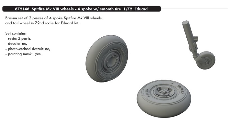 EDUARD - BRASSIN 1/72 Spit.Mk.VIII wheels 4 spoke - smooth