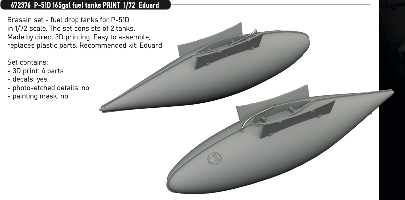 EDUARD - Brassin 1/72 P-51D 165gal fuel tanks PRINT for Eduard