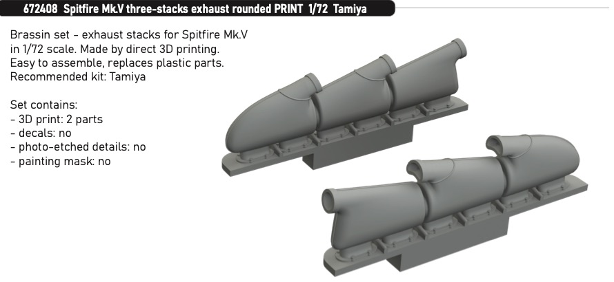 Brassin 1/72 Spitfire Mk.V 3-stacks exhaust rounded