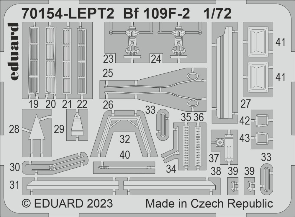 Eduard - 1/72 Messerschmitt Bf-109F-2 The ProfiPACK edition kit of German WWII fighter plane Messerschmitt Bf-109F-2 in 1/72 scale. plastic parts:Eduard marking options: 6 decals: Eduard Pe parts: yes, pre-painted painting mask: yes